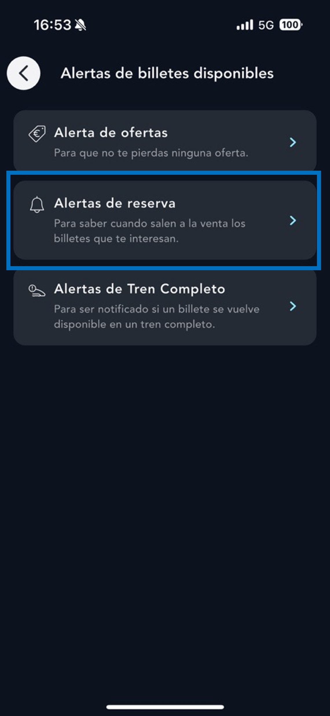 También puedes suscribirte a la alerta de reserva cuando busques un viaje si los trenes aún no están abiertos a la venta.