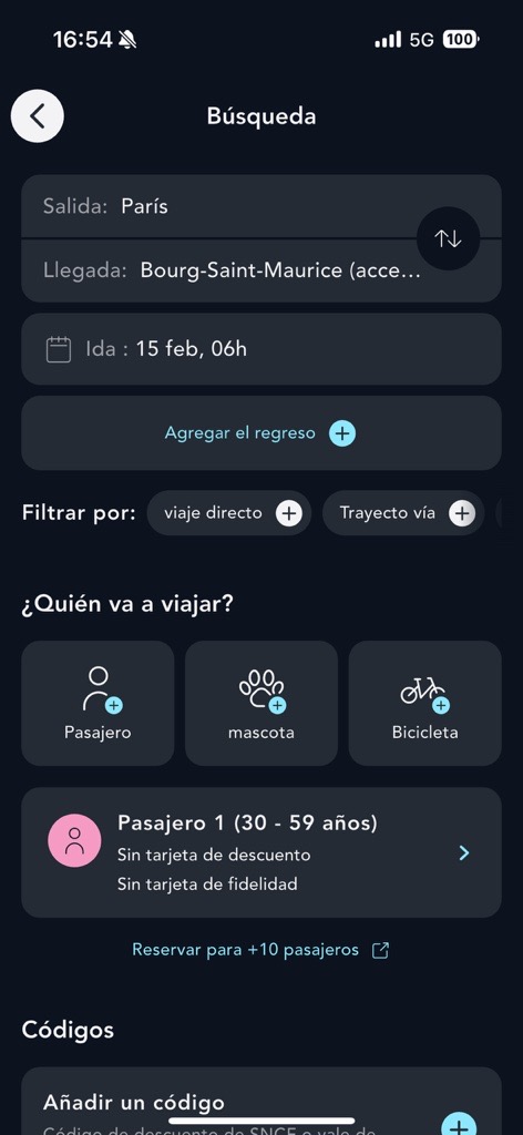 Introduce tu trayecto y tu perfil si no has iniciado sesión en tu cuenta.