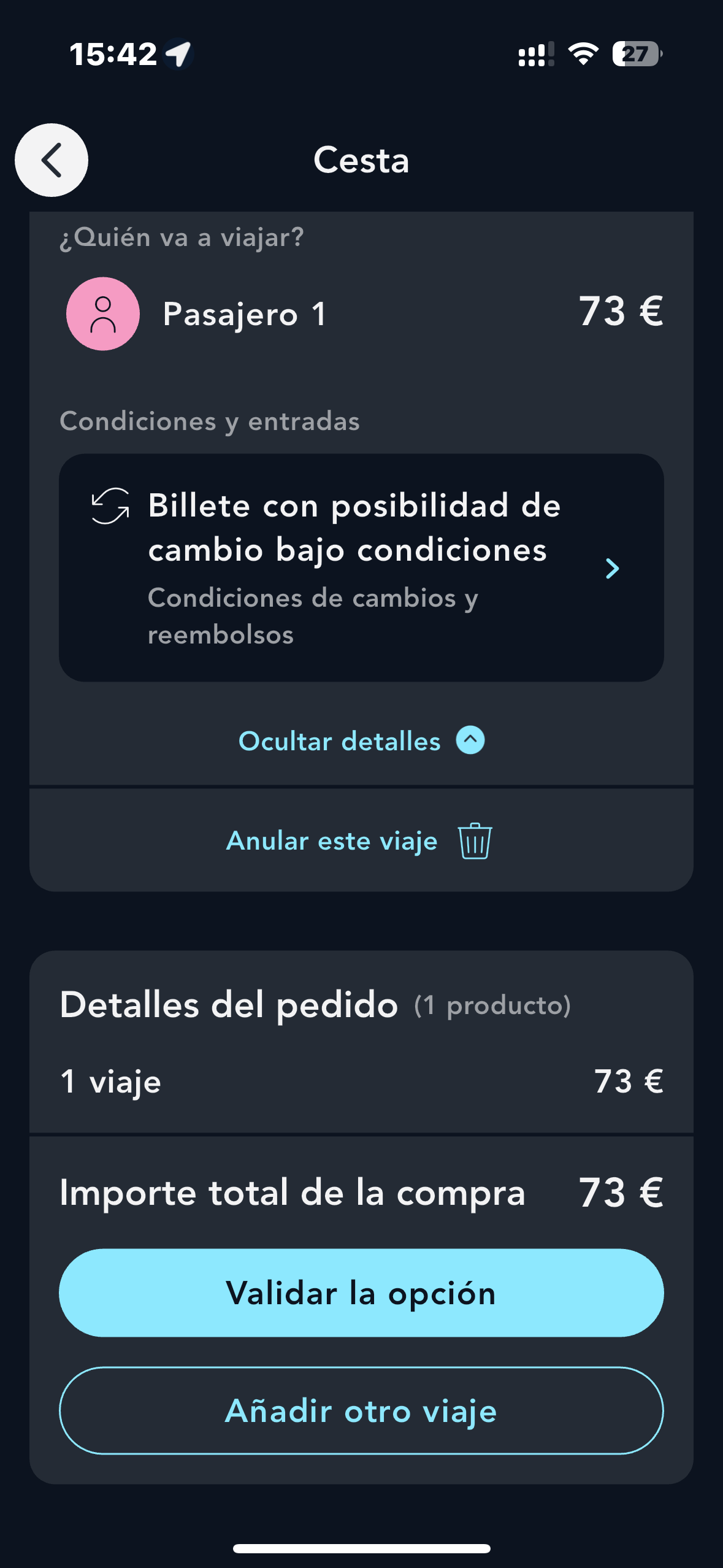 Comprueba los detalles del pedido y haz clic en «Validar la opción».